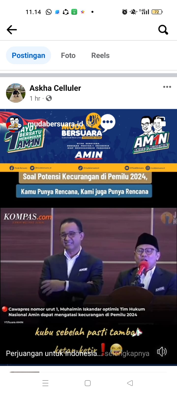 Sebelumnya, guru tersebut dalam akun Facebook nya @Askha Celluler mengunggah gambar Anies Muhaimin (AMIN) berikut keterangan-keterangan atau narasi mengkampanyekan.
