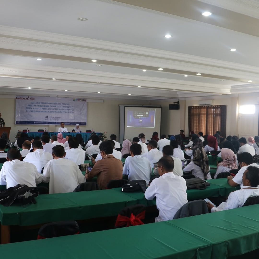 Cianjur – Badan Kepegawaian Pengembangan Sumber Daya Manusia (BKPSDM) Kabupaten Cianjur menggelar kegiatan evaluasi kenaikan pangkat, jabatan fungsional, dan mutasi tahun 2024, serta sosialisasi penyesuaian masa kerja Pegawai Negeri Sipil (PNS) di lingkungan pemerintah kabupaten Cianjur, Rabu (9/10/2024).