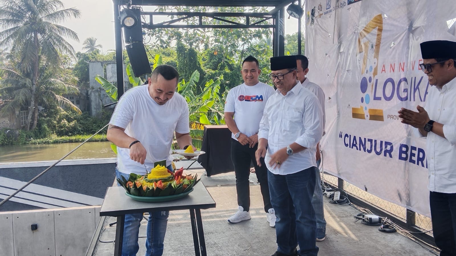 CIANJUR – Bupati Cianjur Herman Suherman berpantun di HUT ke 1 Logikanews di Cafe Headquarter, Sabtu, (08/06/2024).