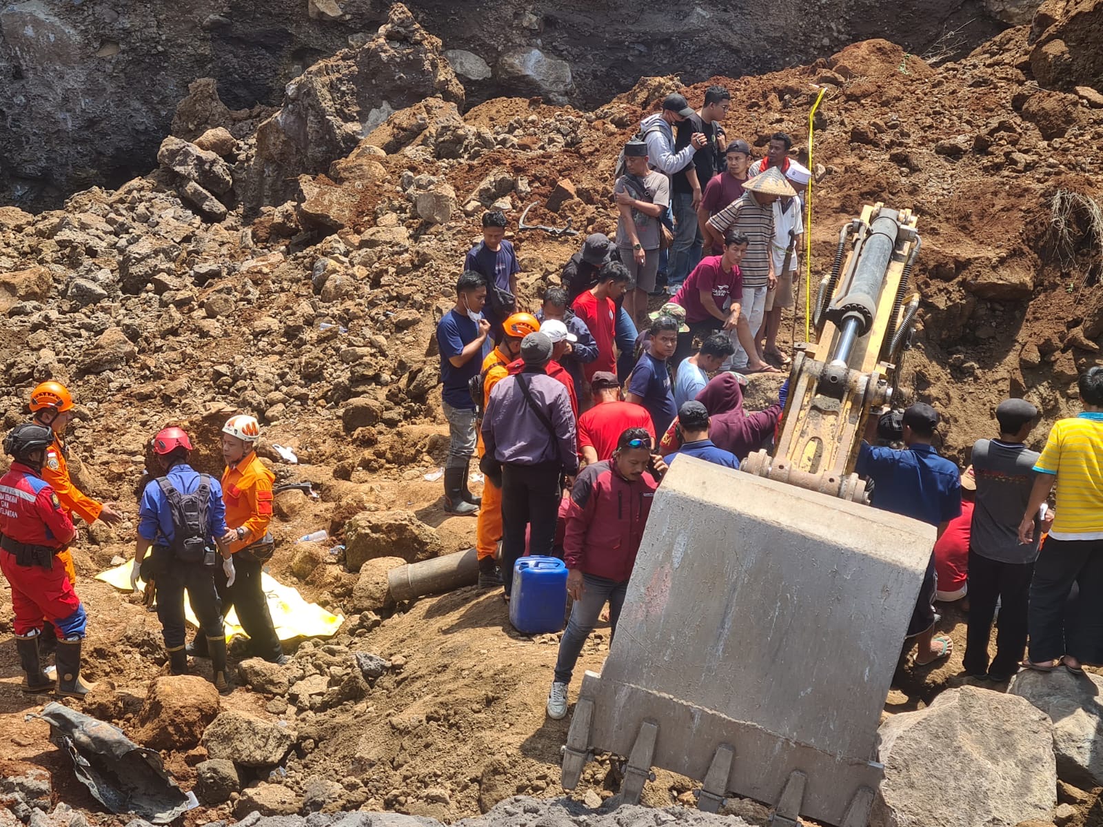 CIANJUR – Jasad Maman (31), operator alat berat ekskavator yang tertimbun material tanah longsor di Desa Sukamulya Kecamatan Sukaluyu, berhasil dievakuasi tim gabungan, Sabtu, 14 September 2024. Petugas membutuhkan waktu hampir lima jam mengevakuasi tubuh warga Desa Rahong Kecamatan Cilaku.