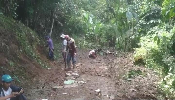 Among menambahkan, warga saat ini berinisiatif untuk memperbaiki secara swadaya agar jalan tidak terlalu rusak.