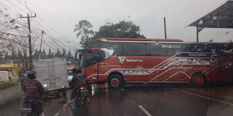 Untuk melakukan proses evakuasi bus dan mengatasi kemacetan, pihaknya telah menerjunkan satu unit mobil derek.