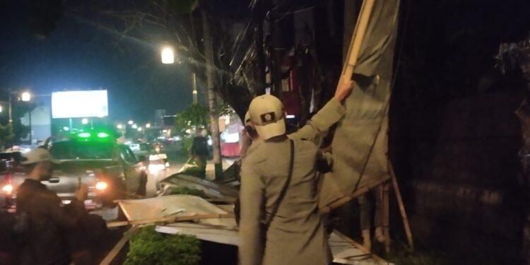 Cianjur – Badan Pengawas Pemilu (Bawaslu) Cianjur bersama Satpol PP, KPU, Kesbangpol, Dinas Perhubungan, Bapenda, aparat TNI dan Polri melakukan aksi penyisiran untuk mencopot ribuan baliho partai politik dan calon legislatif (Caleg), Sabtu malam, (10/02/2023).