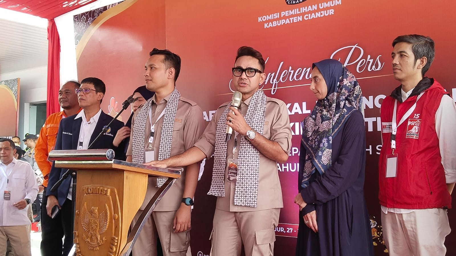 Bakal pasangan calon bupati dan wakil bupati Cianjur itu diusung koalisi Partai Gerindra, NasDem, PSI, Partai Buruh, dan Partai Ummat. Tiba sekitar pukul 13.30 WIB, pasangan Muhammad Wahyu dan Ramzi Geys Thebe diantar ratusan pendukungnya.