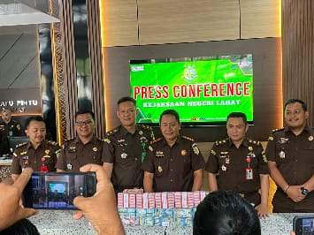 konferensi pers capaian kinerja Kejaksaan Negeri Lahat pada Senin, 9 Desember 2024.