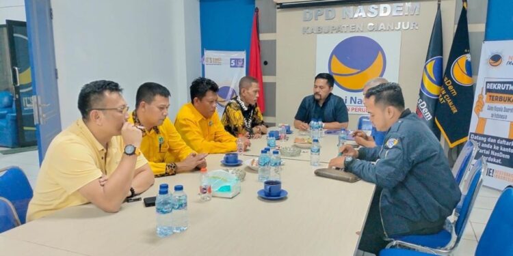 Menyusul kedatangan Ketua DPD Golkar Cianjur Tb Mulyana Syahrudin ke sekretariat DPD Nasdem Cianjur di Jalan KH Abdullah Bin Nuh.