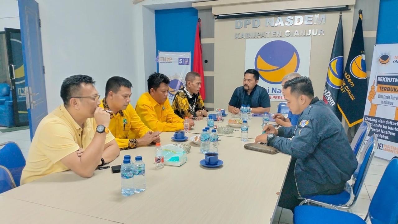 Menyusul kedatangan Ketua DPD Golkar Cianjur Tb Mulyana Syahrudin ke sekretariat DPD Nasdem Cianjur di Jalan KH Abdullah Bin Nuh.
