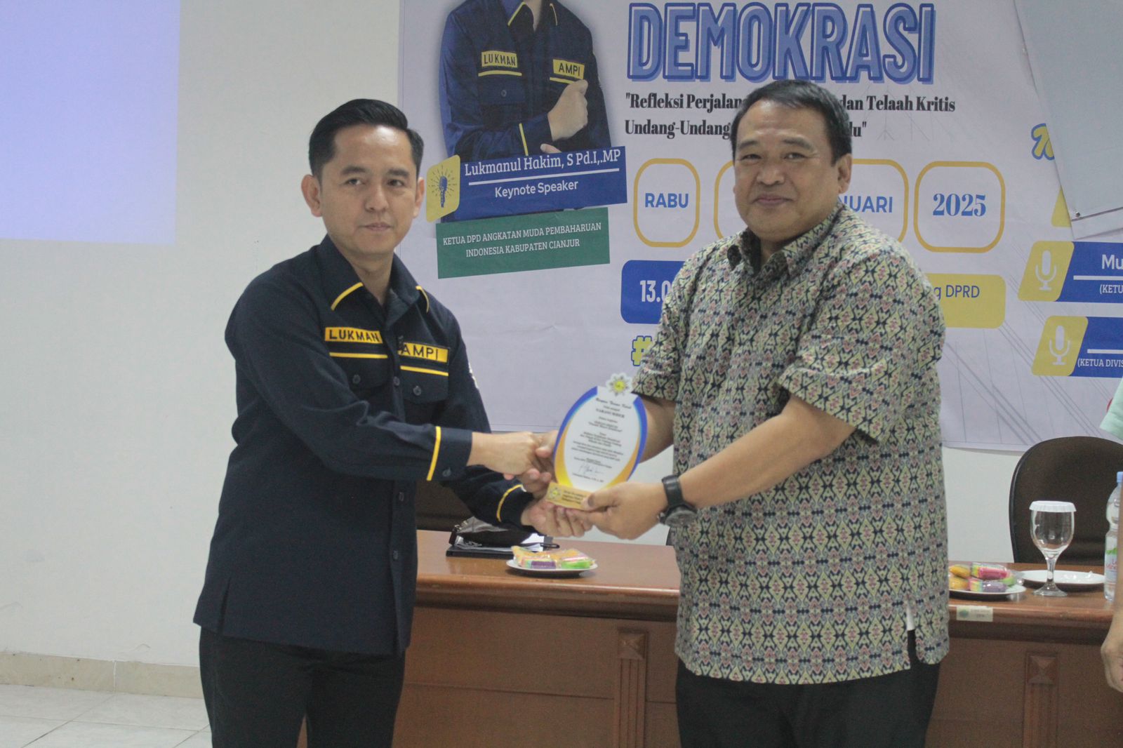 CIANJUR – Ketua DPD Angkatan Muda Pembangunan Indonesia (AMPI) Kabupaten Cianjur, Lukmanul Hakim, mengikuti diskusi bertema Pemuda Bicara Demokrasi : Refleksi Perjalanan Demokrasi, Telaah Kritis Terhadap UU Pemilu dan Pilkada. Anggota DPRD Fraksi Golkar Cianjur itu memiliki pandangan soal demokrasi politik bangsa yang semakin berkembang hingga kini, termasuk pada pesta Pemilihan Umum.