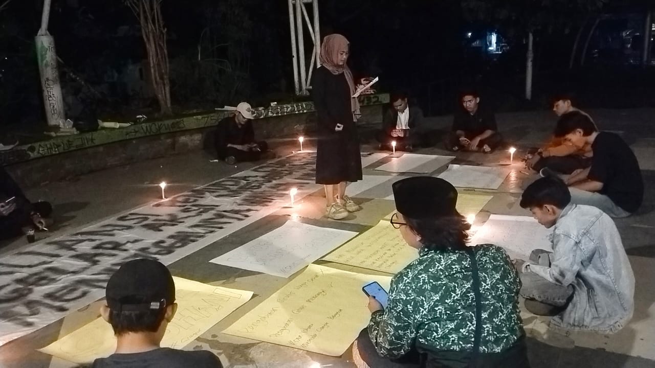 CIANJUR – Mahasiswa mengatasnamakan Aliansi Pemuda Cianjur (APC) menggelar doa bersama untuk almarhumah Yohani, warga Desa Sukamulya Kecamatan Naringgul yang meninggal dunia diduga usai mengikuti pengobatan gratis yang digelar pasangan calon nomor urut 2. Kegiatan doa bersama digelar di Taman Kreatif Joglo, Senin, 4 November 2024.