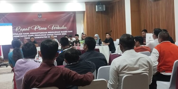 Foto : berlangsungnya proses rapat pleno terbuka Pemilu 2024 Kabupaten Cianjur.