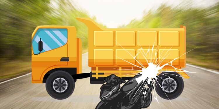 Sewaktu menempuh jalan lurus truk tersebut mendahului kendaraan sepeda motor hingga terjadi serempetan. Pengemudi motor pun oleng dan terjatuh.