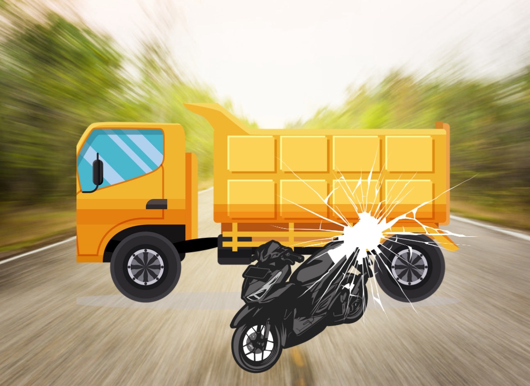 Sewaktu menempuh jalan lurus truk tersebut mendahului kendaraan sepeda motor hingga terjadi serempetan. Pengemudi motor pun oleng dan terjatuh.