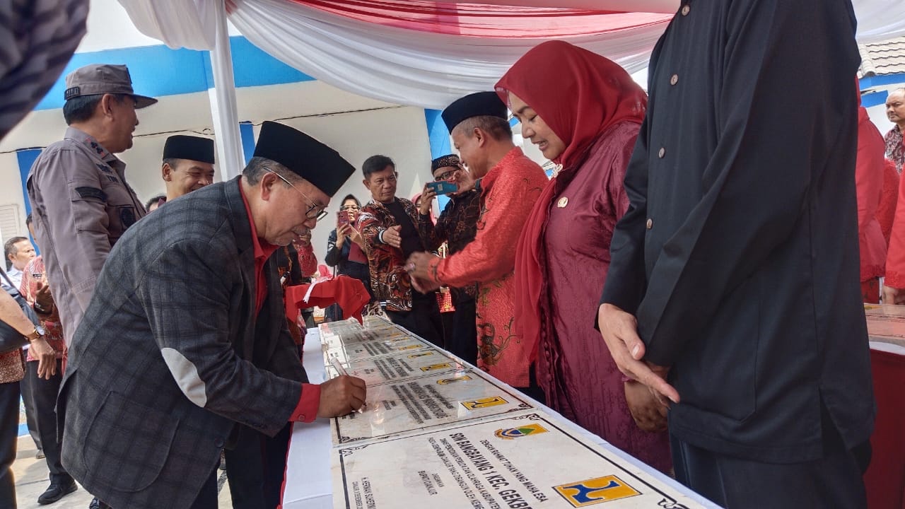 Selain itu peresmian juga berbarengan dengan selesainya puluhan gedung sekolah lainnya. Peresmian ditandai dengan penandatanganan prasasti yang dilakukan Bupati Cianjur Herman Suherman.
