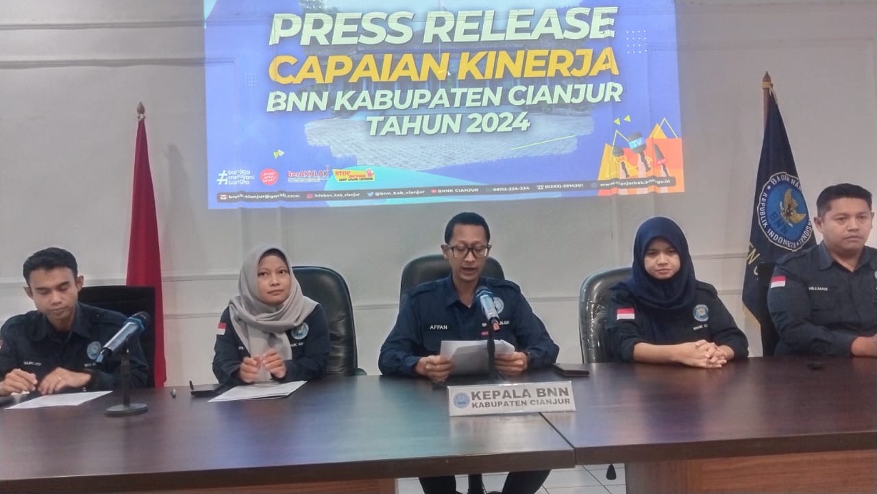 Affan juga menyebutkan, pada 2024 berhasil mengungkap kasus peredaran narkotika jenis ganja kering. BNNK Cianjur berhasil menangkap pengedarnya di Kecamatan Warungkondang.