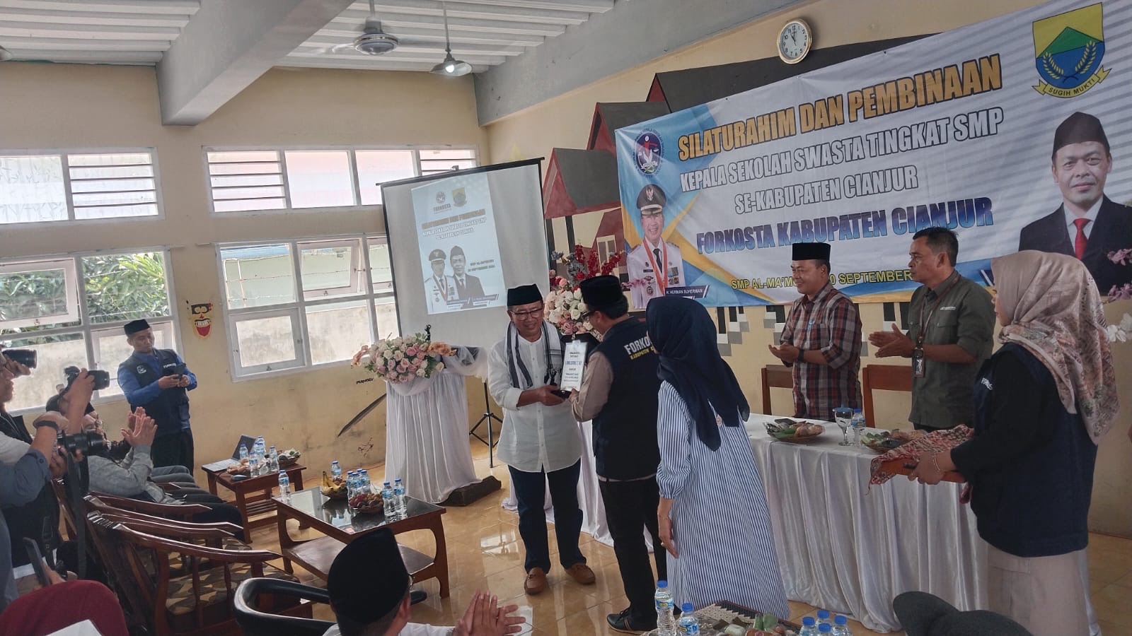 PEMBINAAN: Bupati Cianjur Herman Suherman memberikan materi kepada anggota Forum Komunikasi Kepala Sekolah Swasta (Forkosta) pada kegiatan pembinaan di Yayasan Al-Ma'moen (Dok. Logikanews)