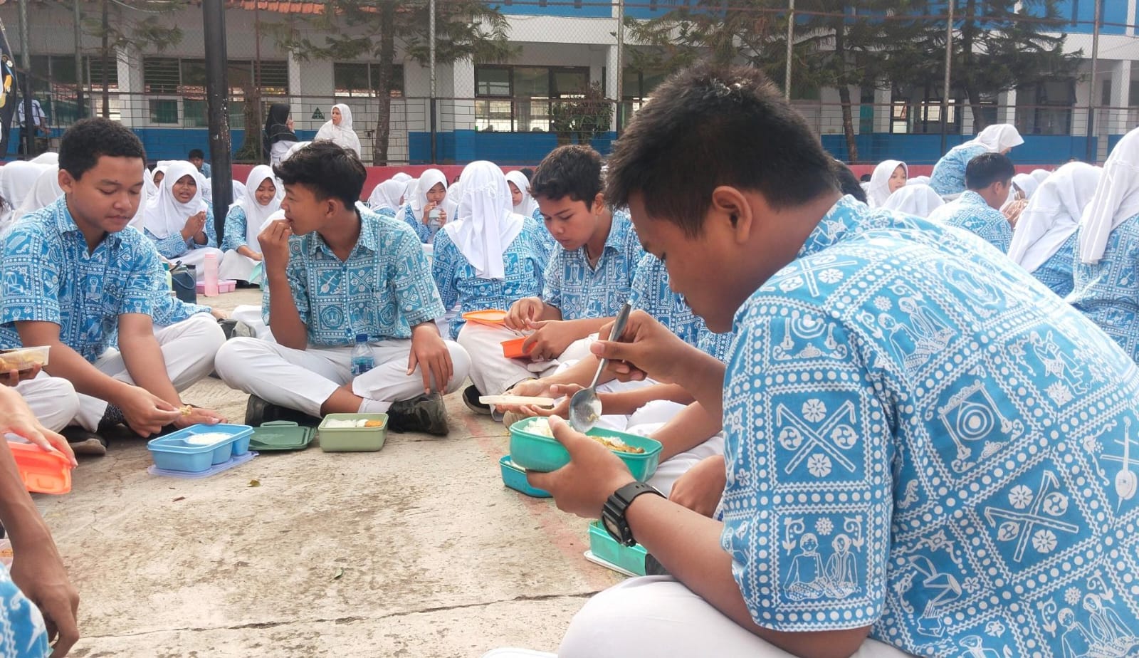 Misalnya ada anak yang makan hanya dengan tahu tempe, sedangkan siswa lainnya ada sayuran buah-buahan, mereka bisa saling berbagi,” tuturnya.