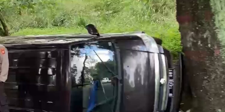 Cianjur – Sebuah mobil jenis Suzuki APV Nopol B 1449 SOT mengalami kecelakaan hingga terguling di Jalan Raya Cianjur Cipanas tepatnya di Tapal Kuda, Kecamatan Cugenang, Senin, (18/03/2024).
