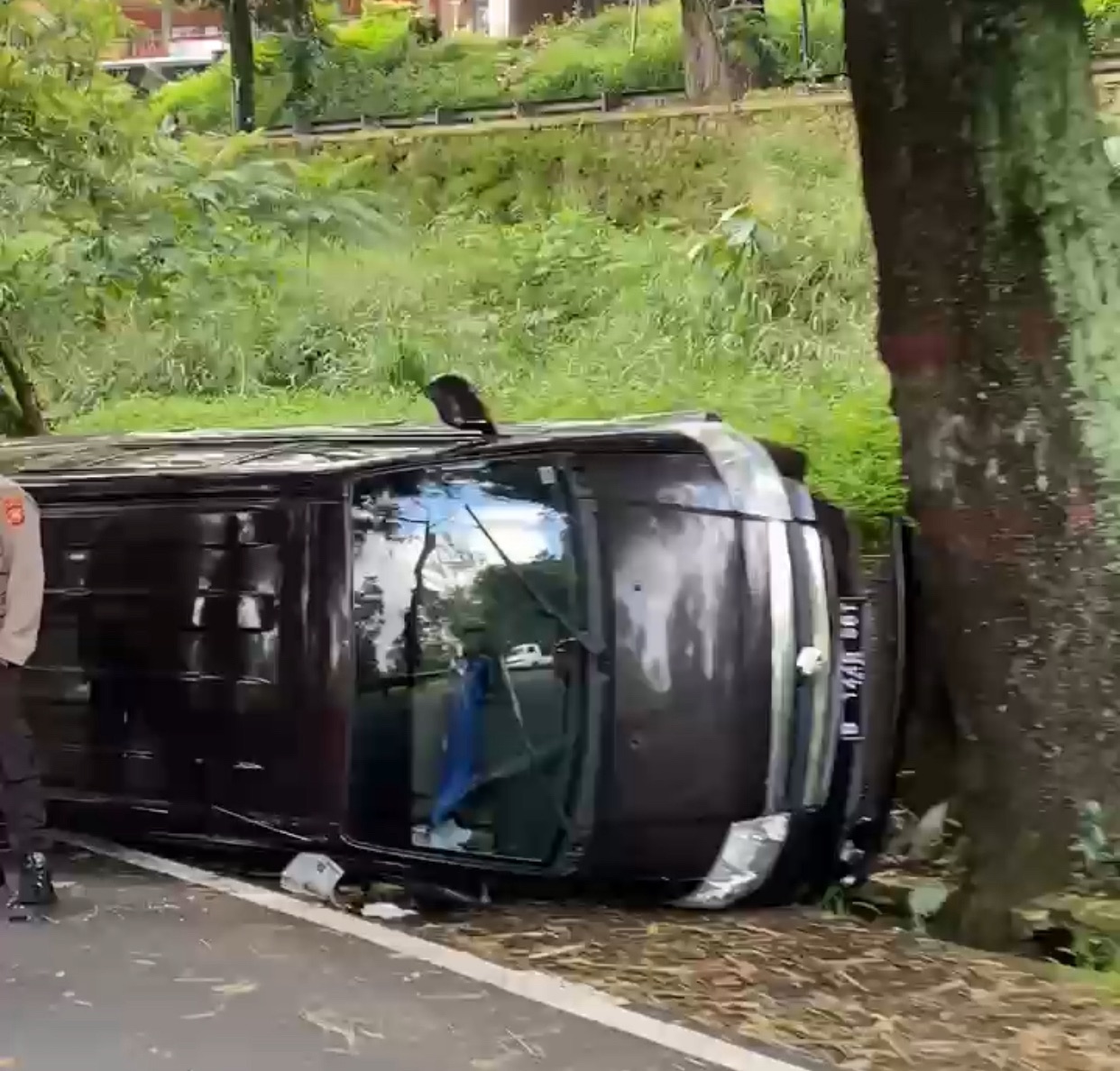 Peristiwa itu lanjut AKP Tedi Setiadi disebabkan sopir kurang fokus mengendarai mobil tersebut.