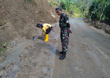 CIANJUR - Danramil Cibinong, Mayor Frederikus Teda, pastikan ruas Jalan Raya Cibinong-Sindangbarang sudah bisa dilalui kendaraan, Rabu (26/6/2024). Sebelumnya, tebing ...