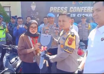 Cianjur -Gia Alia Putri (23) asal Kecamatan Sukaresmi tak kuasa menyembunyikan rasa haru saat motornya ditemukan di Mapolres Cianjur, Rabu, ...