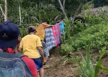 Cianjur - Akses jalan jembatan penghubung yang terputus akibat banjir membuat Cucu Sumarni (36), warga Kecamatan Naringgul terpaksa harus ditandu ...