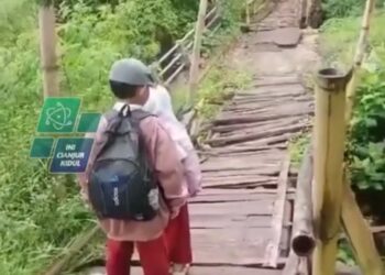 Viral Dua Anak SD di Tanggeung Lewati Jembatan Kayu Hampir Roboh