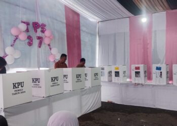 Cianjur - Tempat pemungutan suara (TPS) unik Pemilu 2024 terlihat di salah Perumahan Prima Nagrak Nusantara di Desa Nagrak, Kecamatan ...