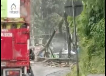 Cianjur - Hujan deras disertai angin kencang mengakibatkan pohon tumbang di Jalan Raya Cipanas Puncak tepatnya di Desa Sindanglaya, Kecamatan ...