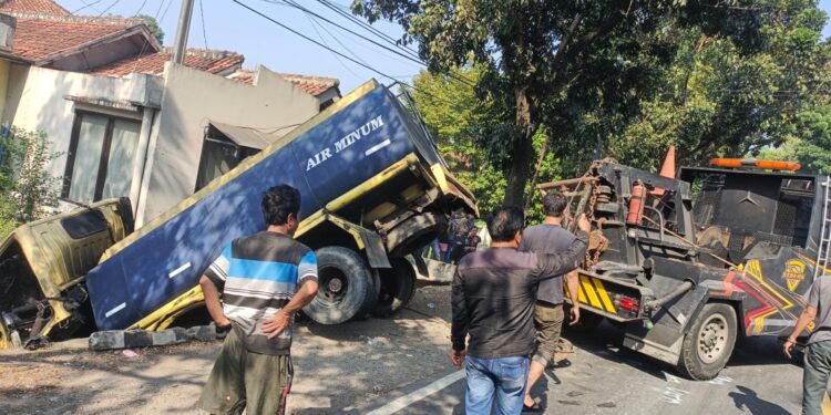 CIANJUR – Truk bermuatan air terperosok ke parit di Jalan Raya Bandung tepatnya di Desa Sukamulya, Kecamatan Karangtengah, Sabtu (27/7/2024).