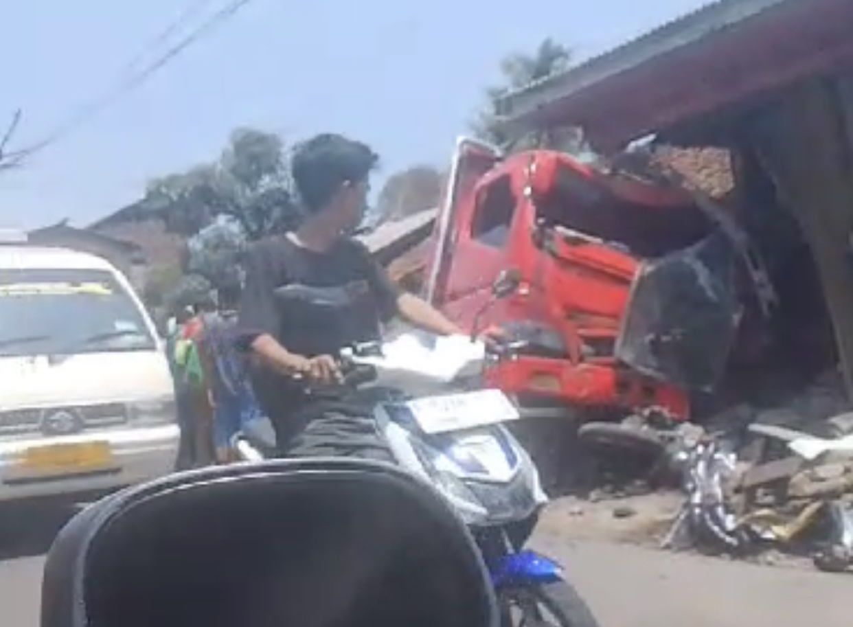 Diketahui truk tersebut menabrak pengendara motor, satu rumah warga dan sebuah warung.