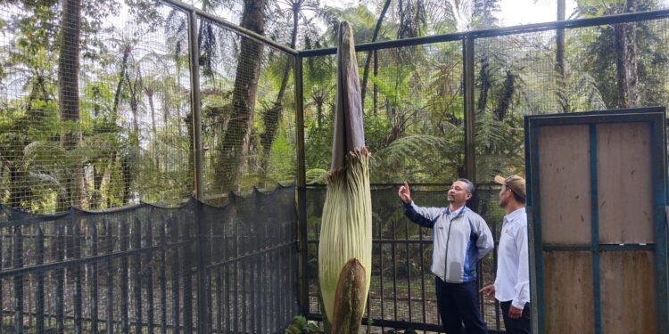 Cianjur – Bunga bangkai raksasa (Amorphophallus titanum Becc) akan segera mekar di Kebun Raya Cibodas dalam satu pekan ke depan.